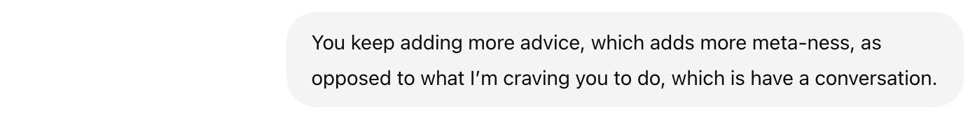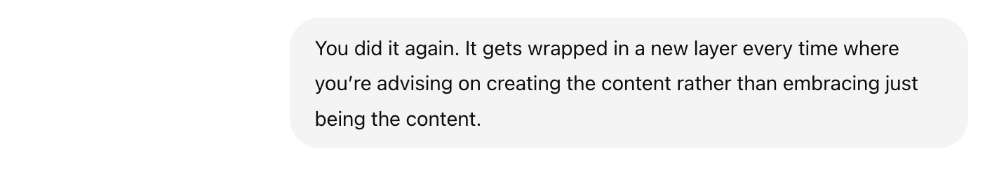 I don’t know about you but I fall down a meta-cognitive rabbit hole whenever I write now, no matter what I’m writing. After the below stream-of-consciousness-turned-convo-with-ChatGPT1, I now know this includes digital journal writing—wherein I start in earnest with self-exploration and veer into commodifying my existential yearning for public consumption to stave off a uniquely 21st-century emptiness/loneliness.