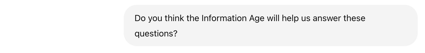 Ultimately, while the Information Age provides powerful tools for exploring existential questions, it is up to individuals and societies to use these tools wisely and thoughtfully.