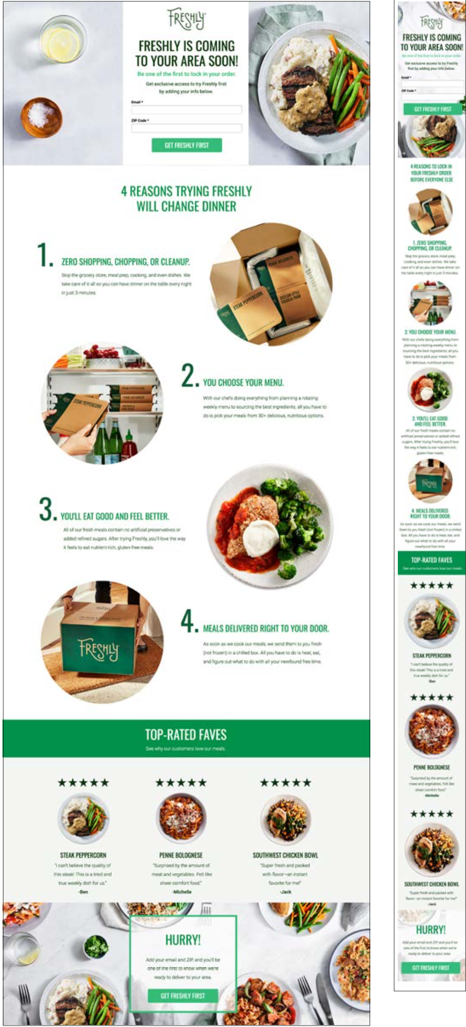 An acquisition campaign focused on filling orders for the launch of a second fulfillment kitchen that expanded Freshly’s service nationwide.