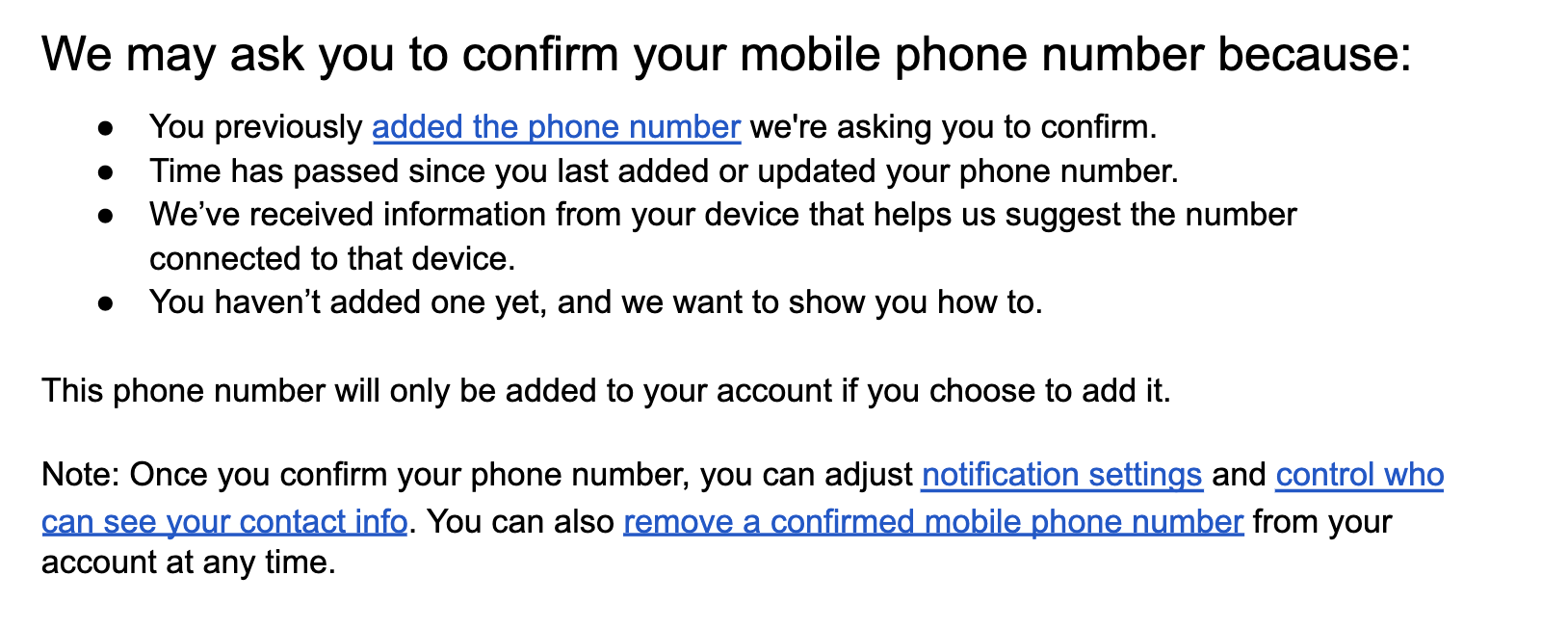 We used device signals, contact point states, and activity between user-linked accounts to determine a user’s needs around phone number and email management, surfacing this info for them in clear and compliant ways. (The clear and compliant part was my job, along with following design and brand standards and optimizing performance.)