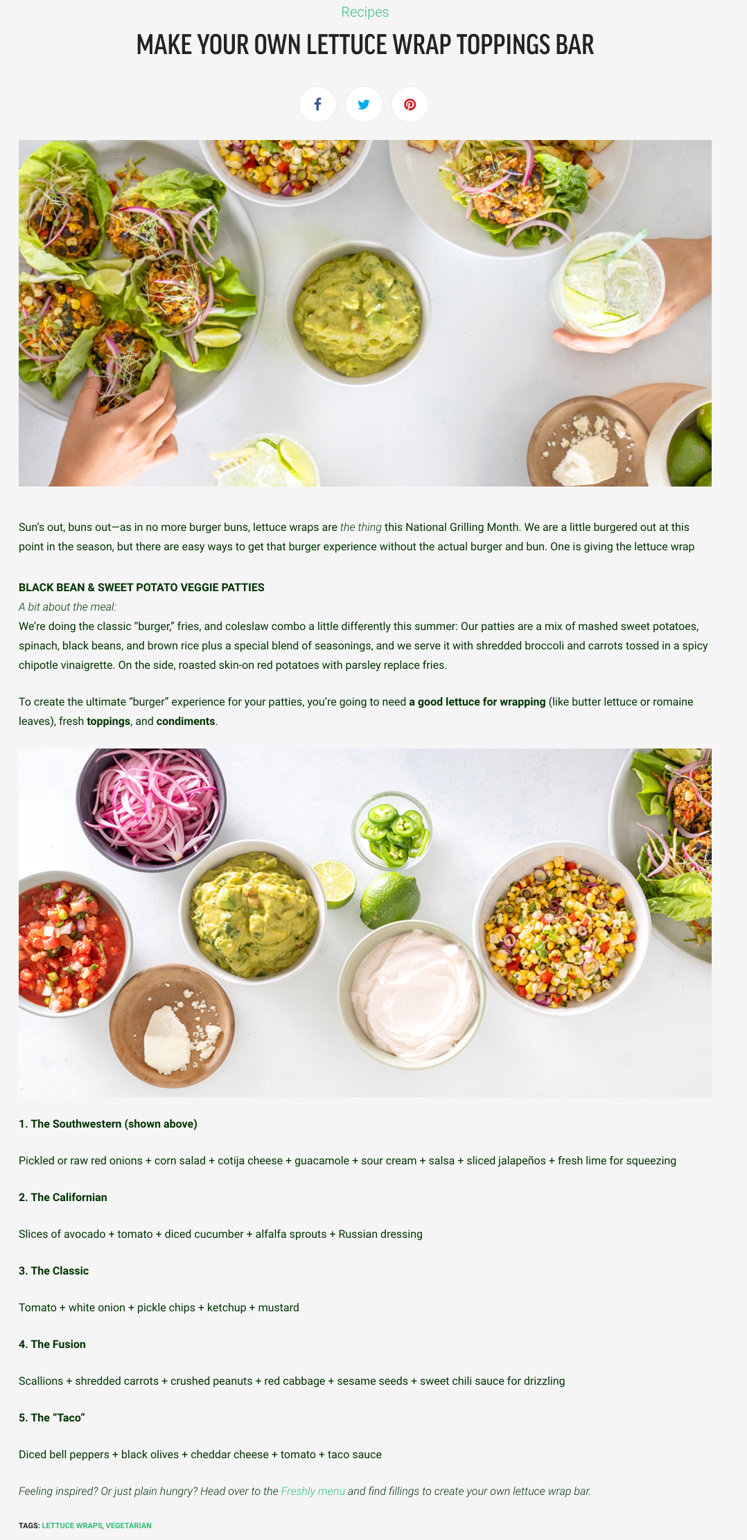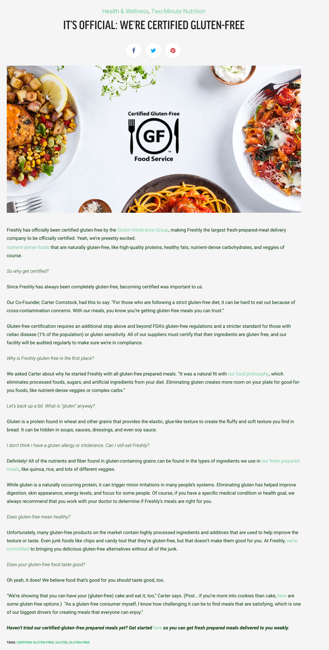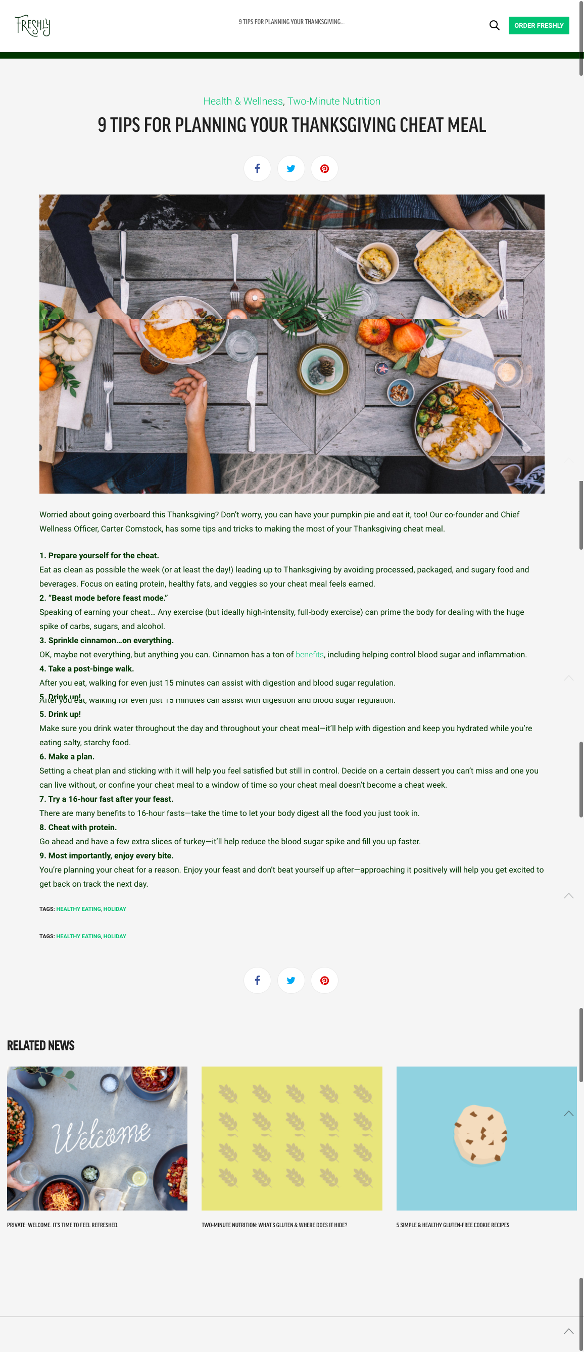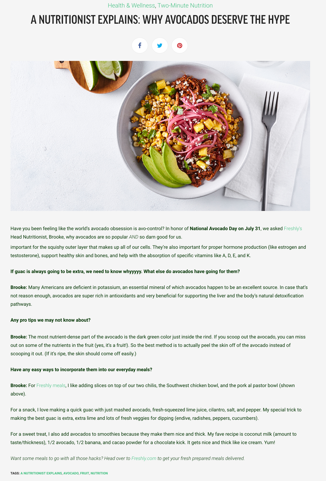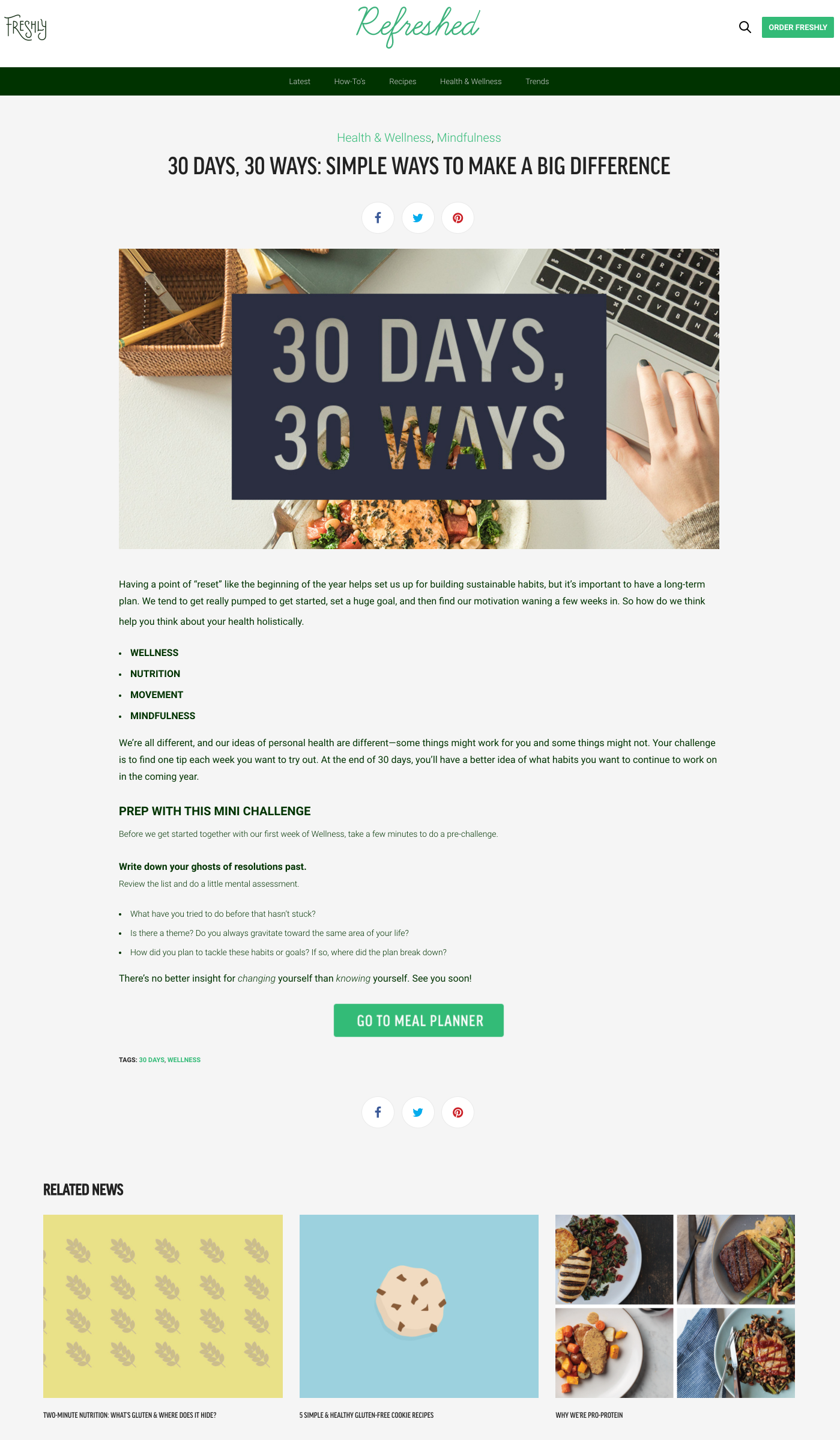 While blog content was not a priority at Freshly while I was there, I used campaigns as opportunities to write content that enhanced the customer experience and improved SEO, including seasonal recipes, wellness tips, and nutrition deep dives.