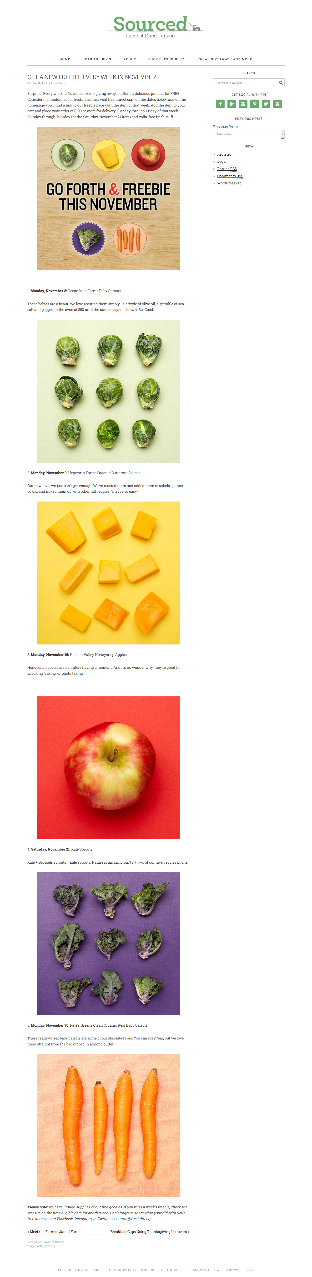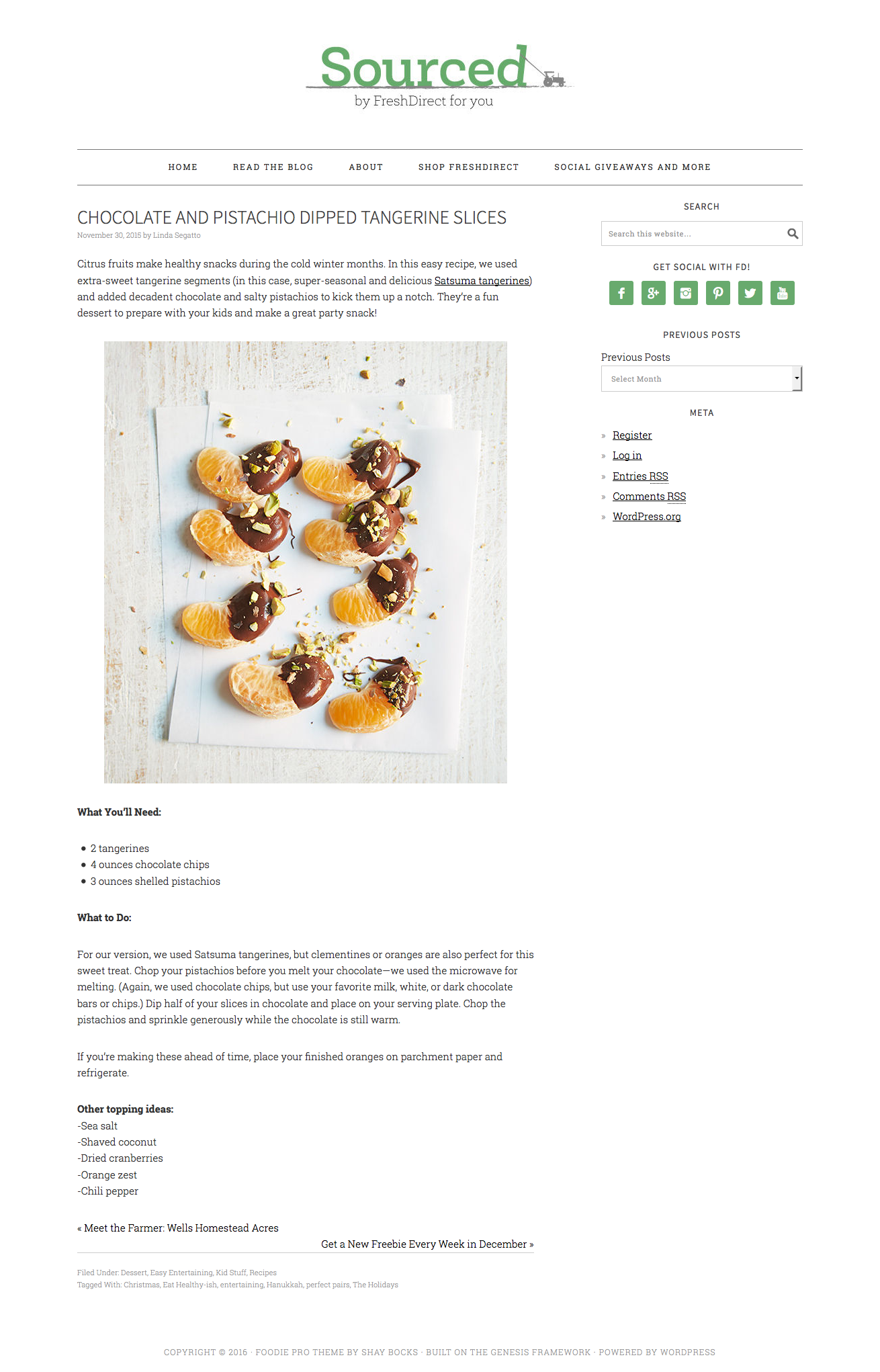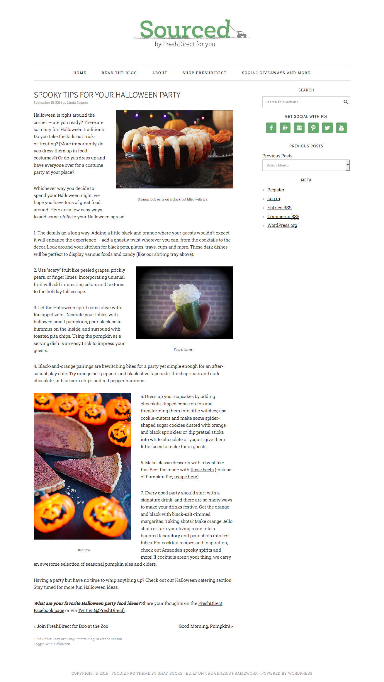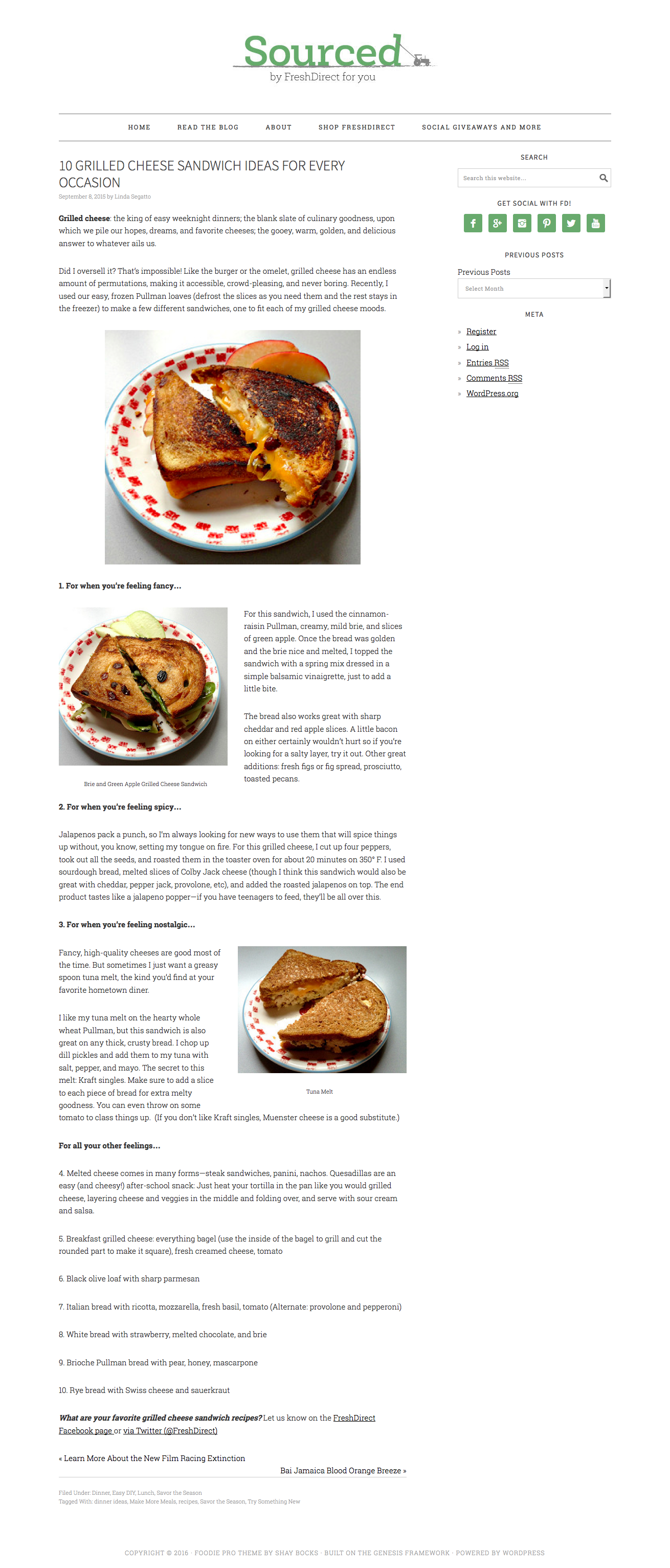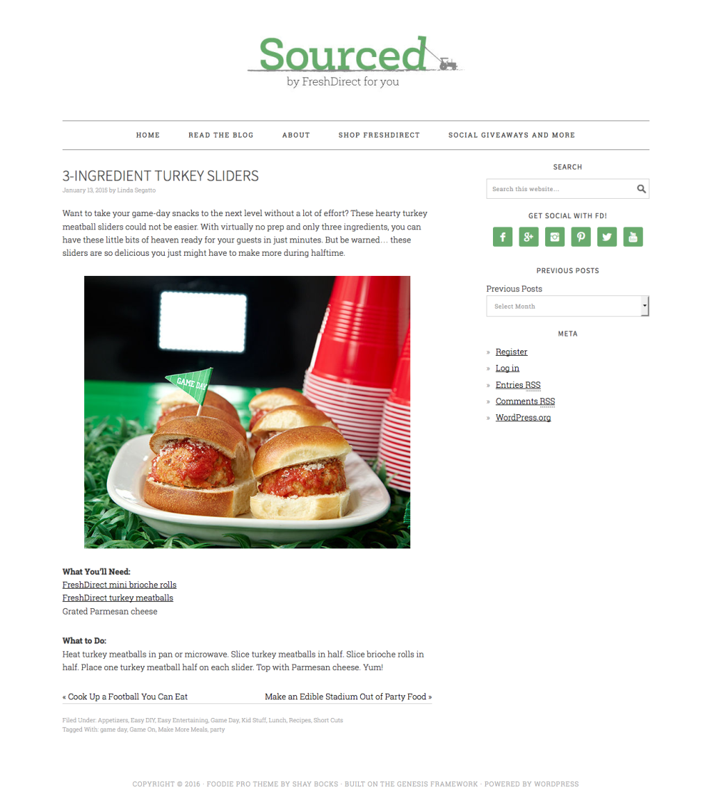 I named, helped design, and managed the blog and its integration and success in FreshDirect marketing by developing a content calendar with our photographers, social media manager, copywriter, and interns to coincide with promotions and tent poles. My authored blog content covered everything from highlighted promotions and integrated partnership content to tips, inspiration, and producer stories. (It’s still named Sourced 10 years later btw.)