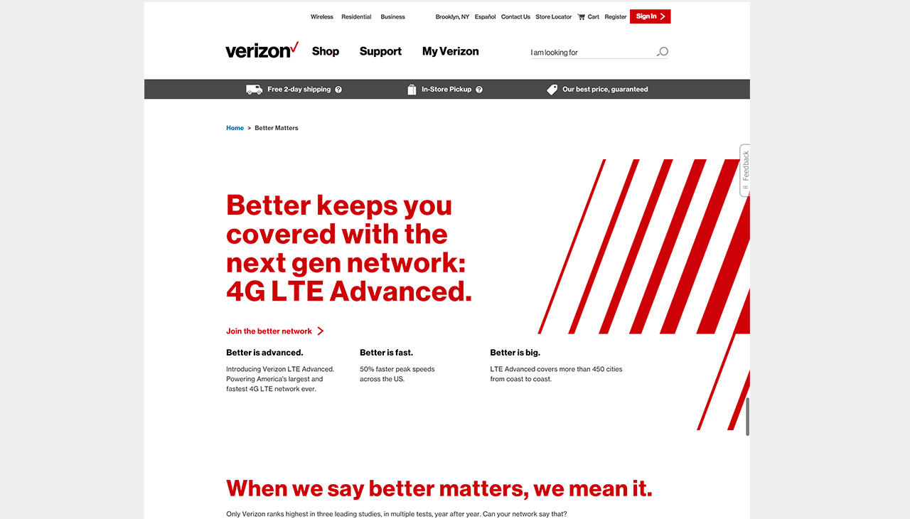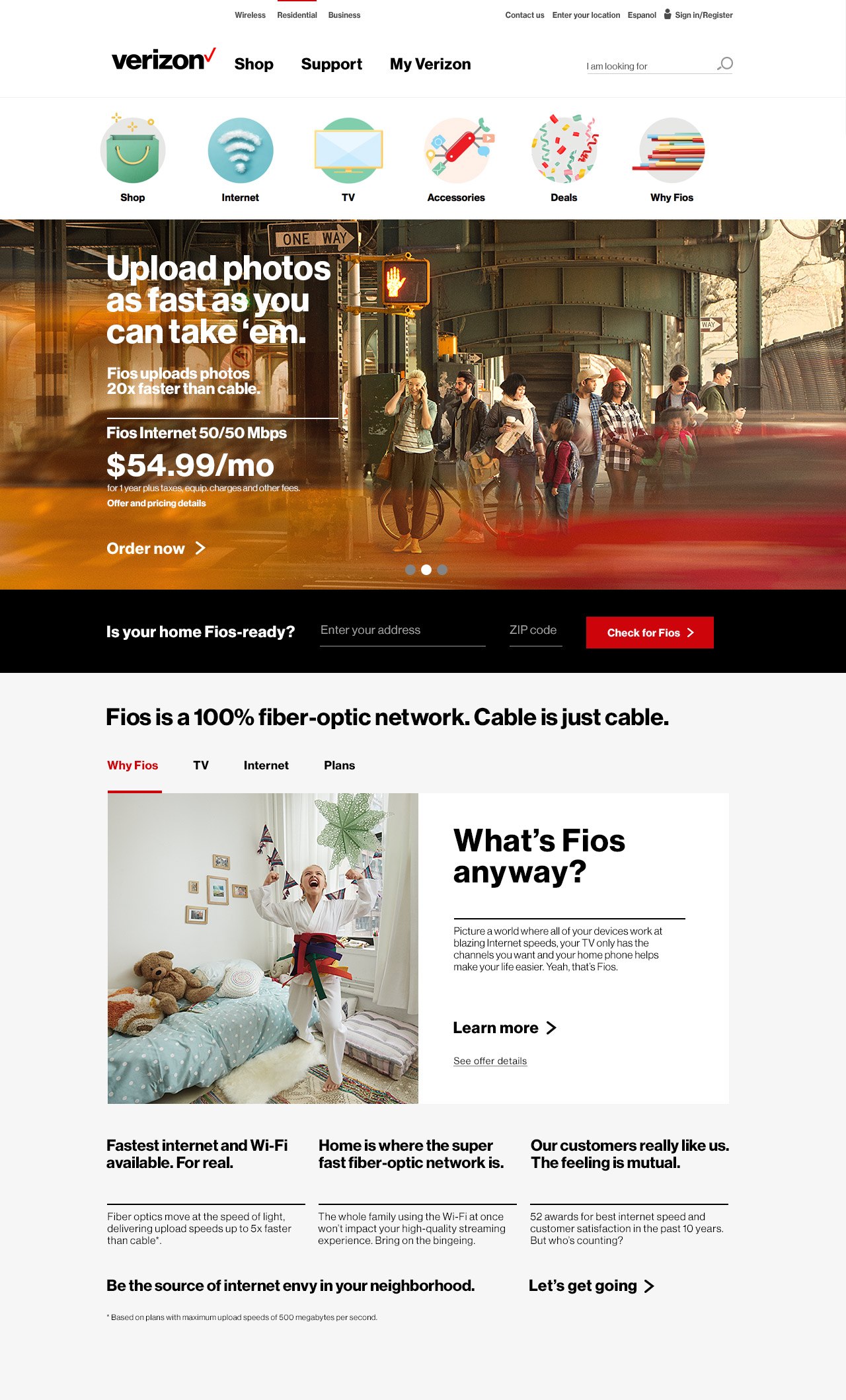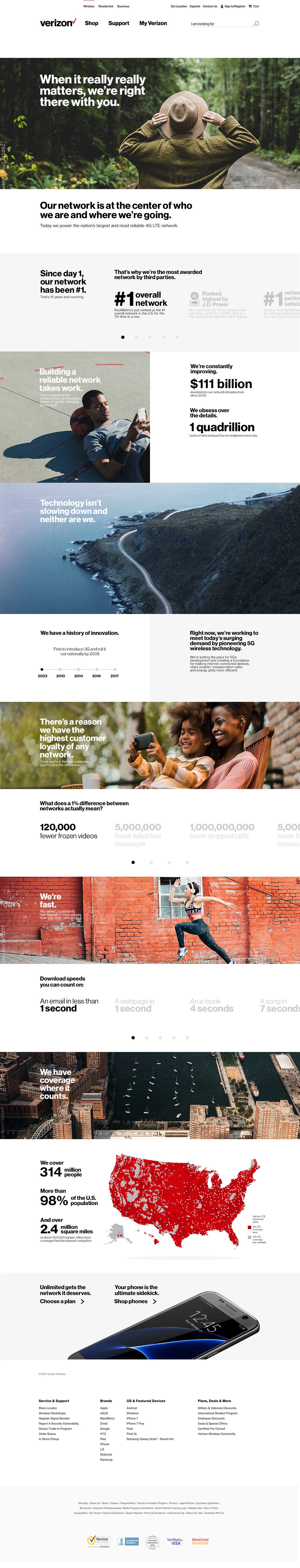 I was one of the first copywriters brought on to help form Verizon’s first in-house agency. Our team worked on visual and copy direction for digital campaigns while ramping up the agency to take on creative for multiple channels. Besides working on “iconic” launches (Apple and Samsung stuff), holiday microsites, and promos on Verizon.com, I also took the lead on strategizing and writing copy for conceptual redesigns of two of the most trafficked landing pages on the website, the “Why Verizon” network page and the main “Plans” page.