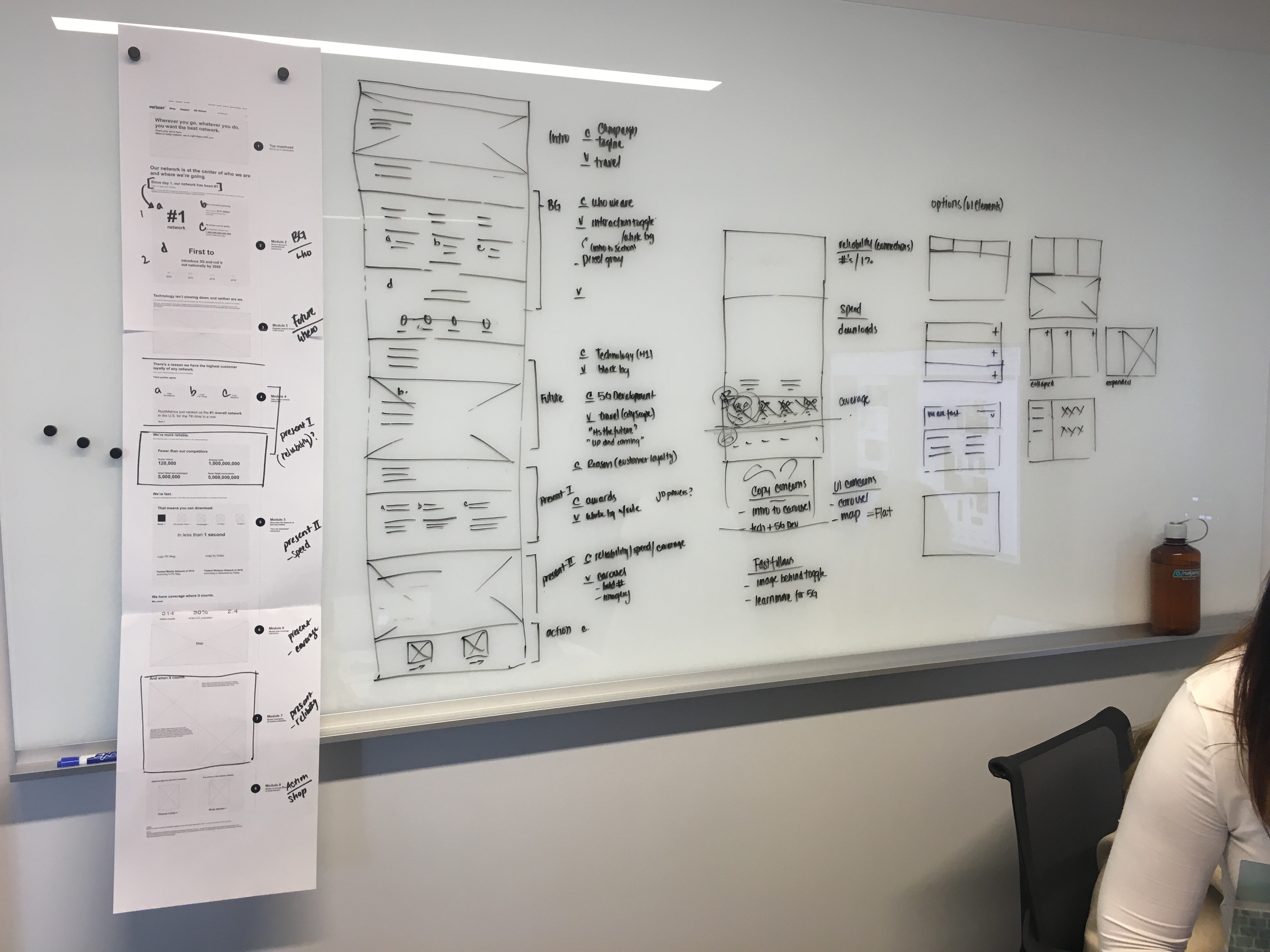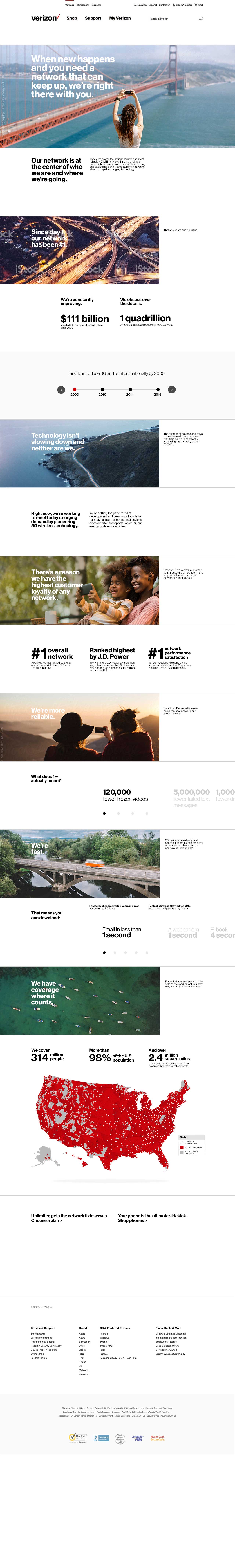 I worked on rethinking the “Network”/”Why Verizon” landing page, developing content for the page that would be compelling for digital as well as consistent with other brand messaging. There wasn’t exactly a creative brief so I pulled together as many insights as possible, repurposed what I could find, and sprinkled in my understanding of where the brand was heading to conceptualize a page that could serve more as a digestible infographic than the content-heavy page shown in the gif below. My amazing design partner for the project, Raquel, brought life to the concept as we wire-framed, and our vision came together in a landing page that I’m still super proud of.